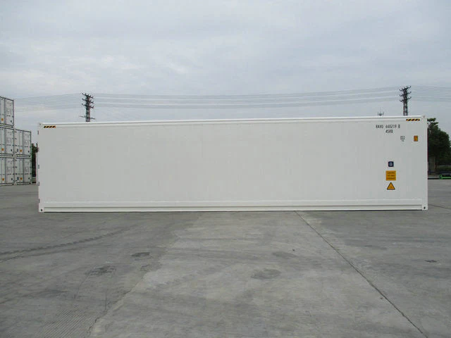 El contenedor refrigerado HC de 40 pies (último viaje) o también llamado contenedor refrigerado de 12 metros, es ampliamente utilizado para el almacenamiento de productos frescos. El contenedor refrigerado de 40″ funciona con una toma de corriente de 380 V. Viene equipado con maquinaria que opera con un rango de temperatura de +25°C a -25°C.
